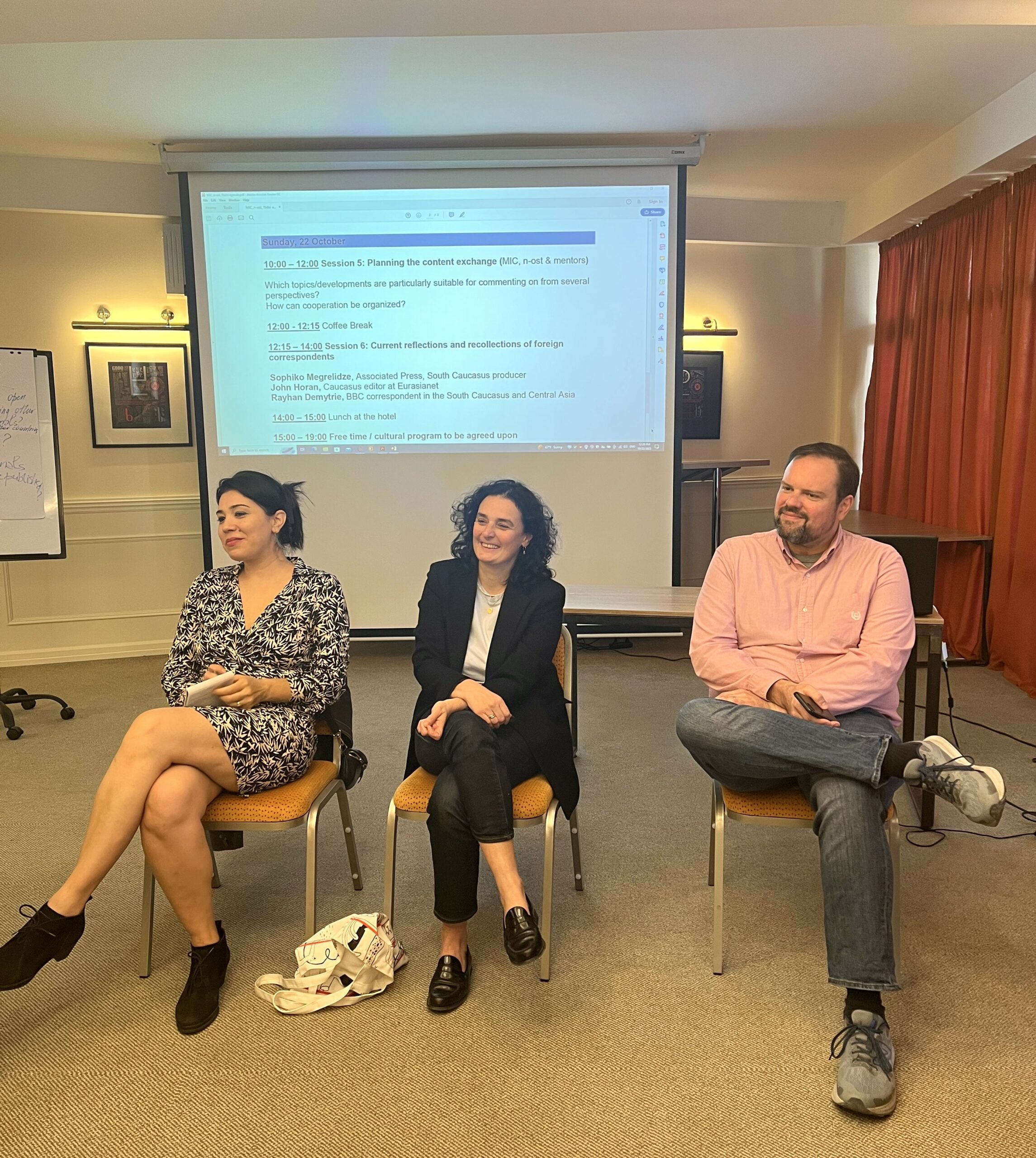 Հայաստանից, Վրաստանից, Մոլդովայից և Ուկրաինայի լրագրողները ծրագրի շրջանակում հանդիպումներ ունեցան Վրաստանում գործող միջազգային լրատվամիջոցների իրենց գործընկերներիև քաղաքական վերլուծաբանների հետ, քննարկեցին ներկա քաղաքական զարգացումները մեր տարածաշրջանում և անդին, իրավիճակի լուսաբանման մարտահրավերները, մամուլի ազատության վիճակը։