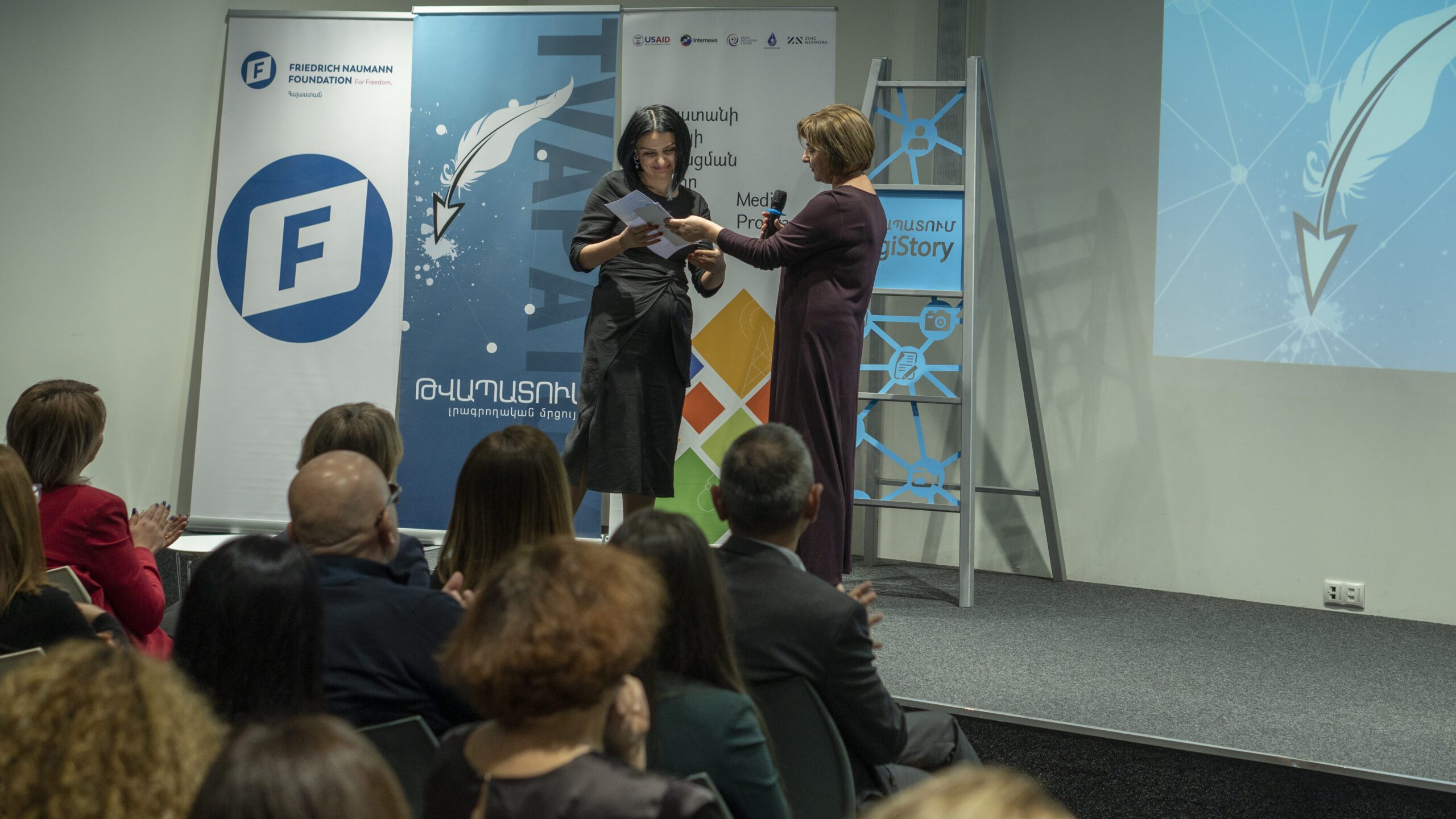 Մեդիա 3.0 տեխնոլոգիաների լավագույն կիրառման անվանակարգում հաղթող ճանաչվեց և 250․000 դրամով պարգևատրվեց «Ամփոփի» լրագրող Կարինե Դարբինյանը՝ «Երկրակեր երկնաքեր Երևան» շարքի համար։