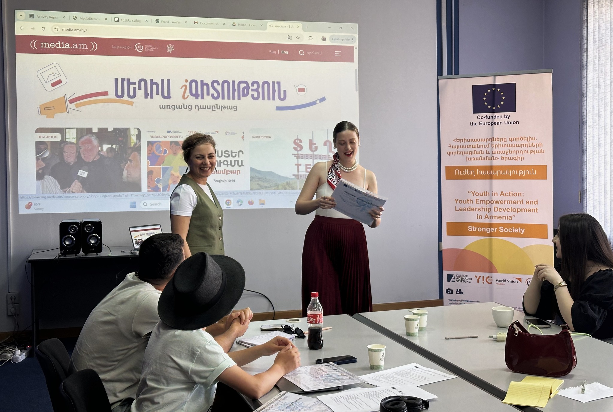 Դասընթացը կազմակերպվել է «Երիտասարդները գործելիս. Հայաստանում երիտասարդների զորեղացման և առաջնորդության խթանման» ծրագրի շրջանակում։ Այն Եվրոպական միության և Կոնրադ Ադենաուեր հիմնադրամի կողմից ֆինանսավորվող նախաձեռնություն է, որն իրականացվում է Վորլդ Վիժն Հայաստանի, Մեդիա նախաձեռնությունների կենտրոնի և Գյումրու «Երիտասարդական նախաձեռնությունների կենտրոն»–ի հետ համատեղ: