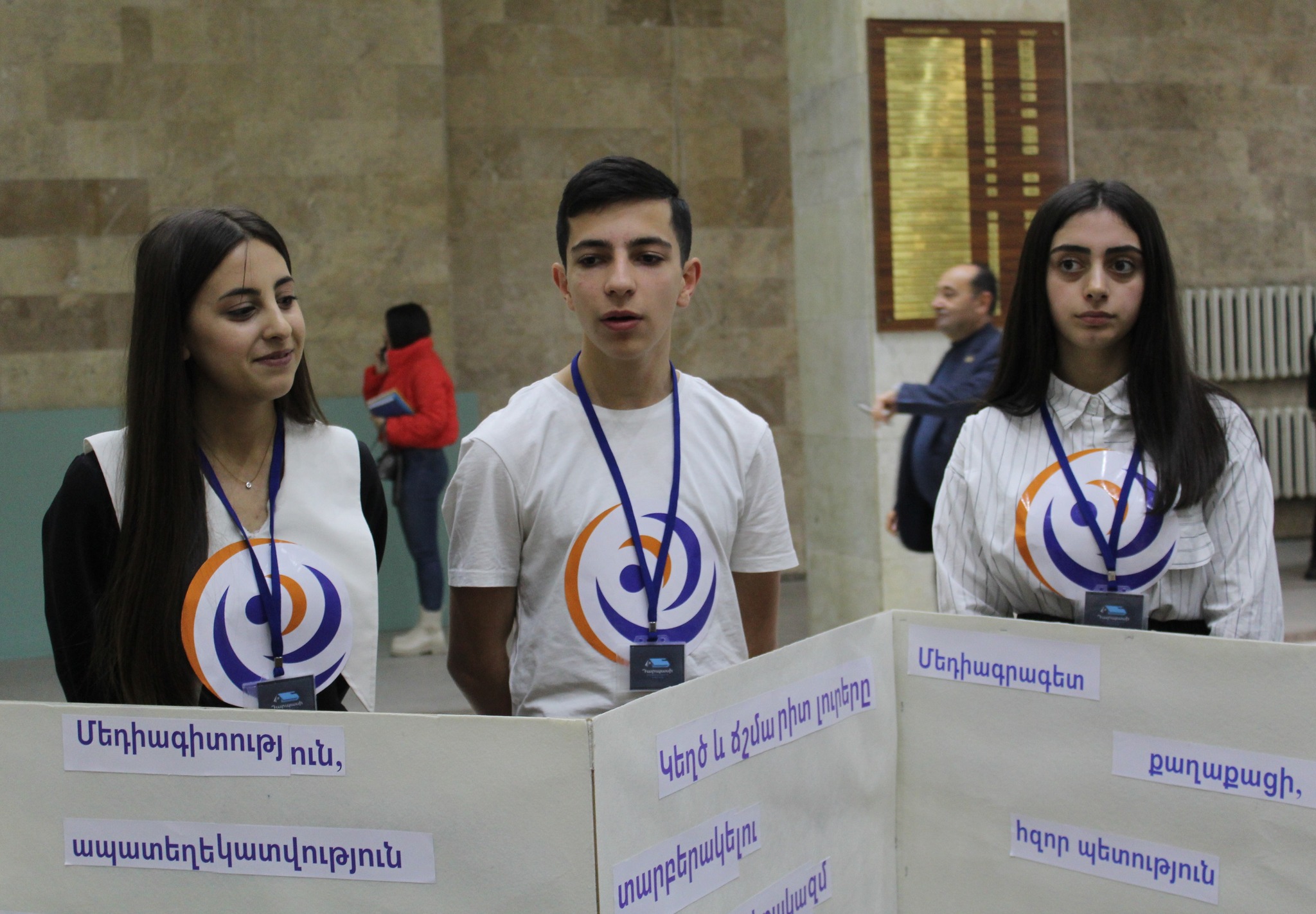 20 դպրոցներ իրենց հետաքրքիր գաղափարներն ու նյութերը ցուցադրեցին ԵՊՀ-ում՝ հուշաթերթիկներ, բուկլետներ, մեդիայի պատմության թանգարան, սեղանի խաղ, պաստառներ, երգ և սուրդոթարգմանությամբ ուղերձներ՝ մեդիագրագիտության թեմաներով․․․ Նույնիսկ մի բուռ հող, որ QR կոդի միջոցով դառնում է ինֆորմացիայի աղբյուր ու մեդիա՝ պատմելով գյուղի ու դրա պատմության մասին։ Աշակերտների ու ուսուցիչների ստեղծագործականությունը դառնում է վարակիչ։