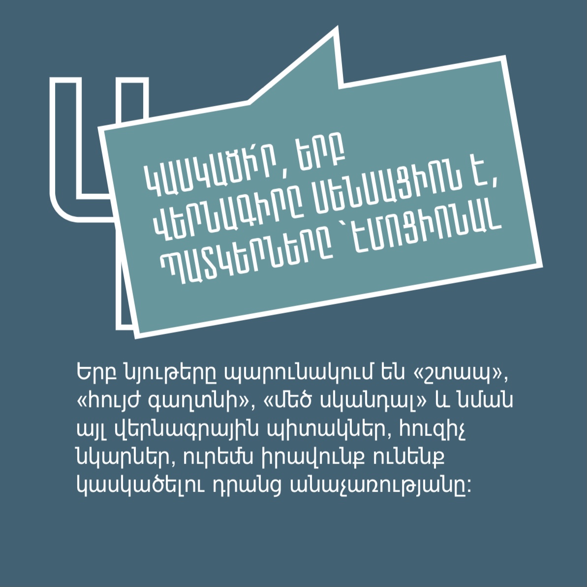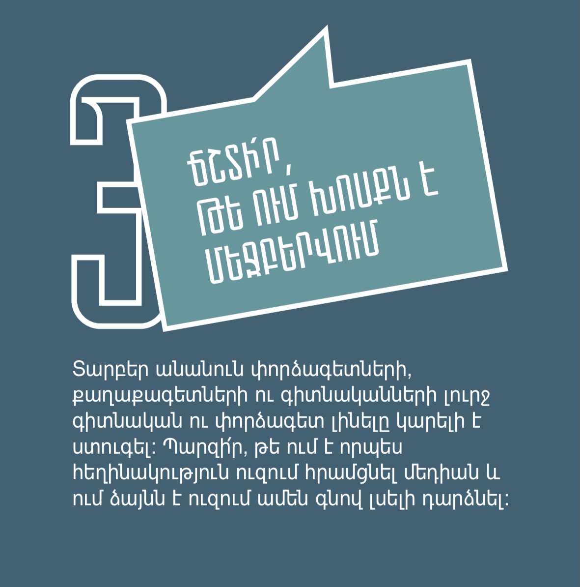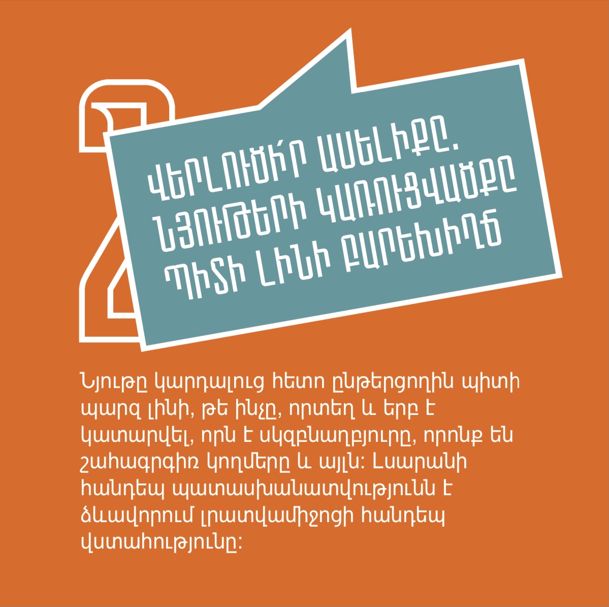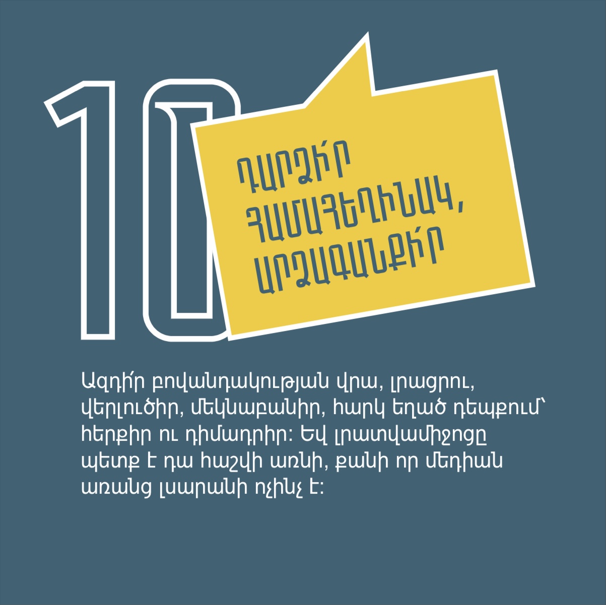 Դիմակայում ենք ապատեղեկատվությանը, լրավարակին, քարոզչությանն ու տեղեկատվական տարբեր մարտահրավերներին՝ պատվաստվելով մեդիագրագիտությամբ և կրելով այն որպես պաշտպանիչ դիմակ։