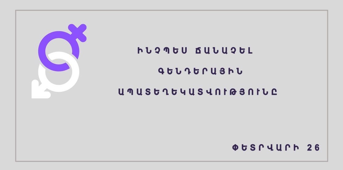 Թեմայի մասնագետների հետ կվերլուծենք հայաստանյան մեդիայում տարածվող գենդերային ապատեղեկատվության խոսույթները, օրինակները, կճանաչենք տերմիններն ու երևույթները, կքննարկենք խտրական, կարծրատիպային լուսաբանումից խուսափելու մոտեցումները։